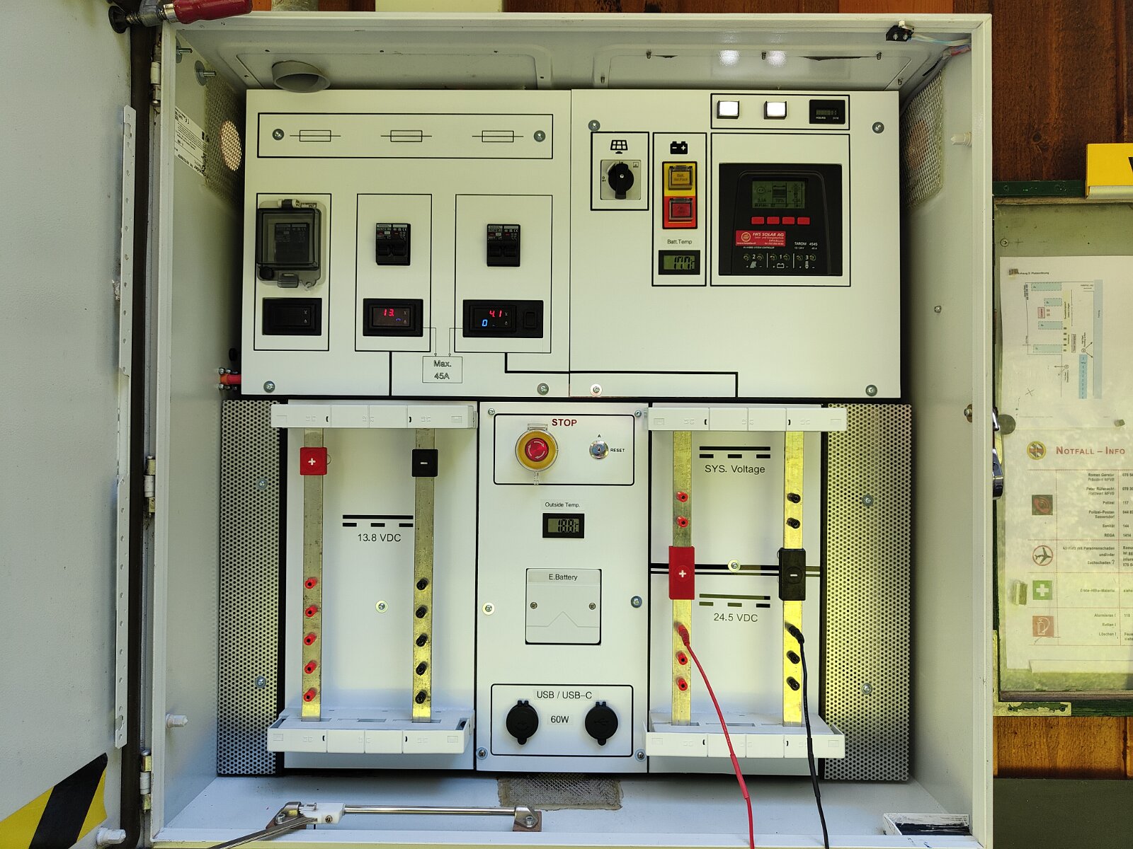 Durch die klare Aufteilung der Stromkreise wird an den Ladegeräten stets die korrekte Spannung bereitgestellt, wie im Tableau angeschrieben. Mehrere Anzeigen bieten eine gute Übersicht über aktuelle Spannung, Strom und den Zustand der Ladestation.